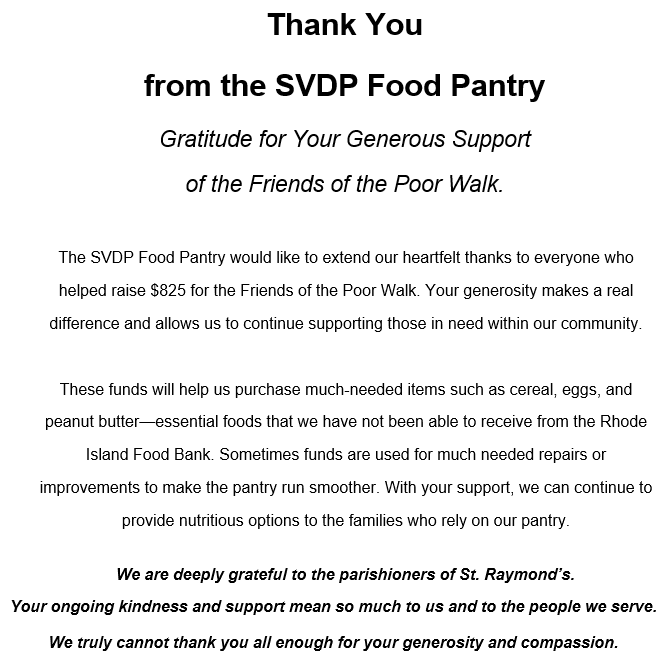 Our St. Raymond's St. Vincent de Paul Food Pantry has